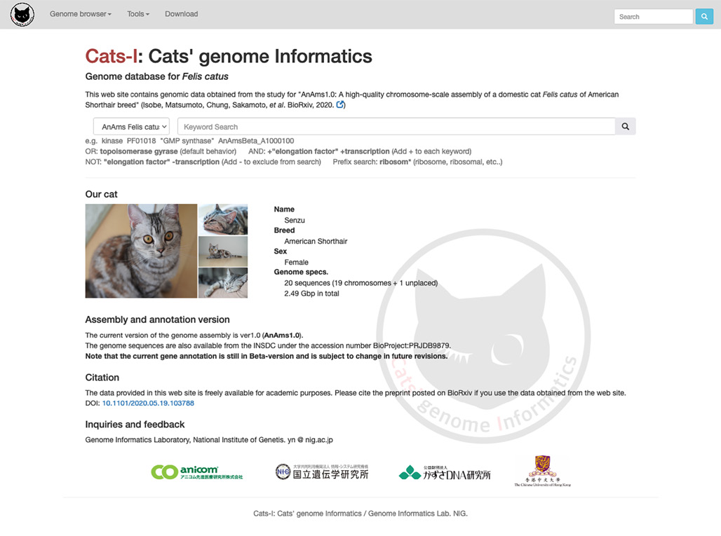 Fortunately, we could undertake our domestic cat genome project in collaboration with three organizations that have been at the forefront of research in this field: a well-known pet insurance company, Anicom Insurance, Inc. (Anicom Specialty Medicinal Institute), the Kazusa DNA Research Institute, and The Chinese University of Hong Kong. The breed we selected to analyze was the American Shorthair (female).