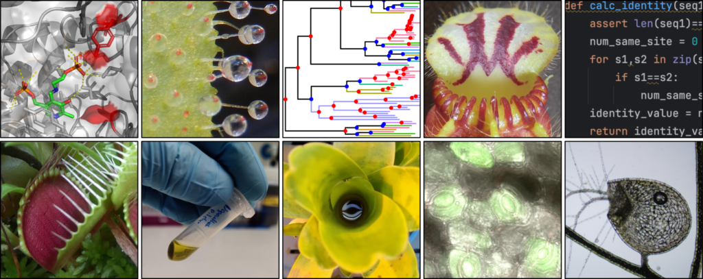 Evolution has led to remarkable innovations in the structures and functions of organisms, sometimes reaching levels that seem almost unbelievable. Our research aims to demystify these evolutionary marvels. We integrate computational and experimental approaches to study a wide range of organisms, particularly focusing on plants. Our primary interest lies in insect-trapping carnivorous plants, which derive nutrients from their captured prey. By studying these unique plants, our research enhances understanding of key concepts in evolutionary biology, including convergent evolution, co-option, drastic morphological changes, phenotypic plasticity, biological interactions, and whole-genome duplication.