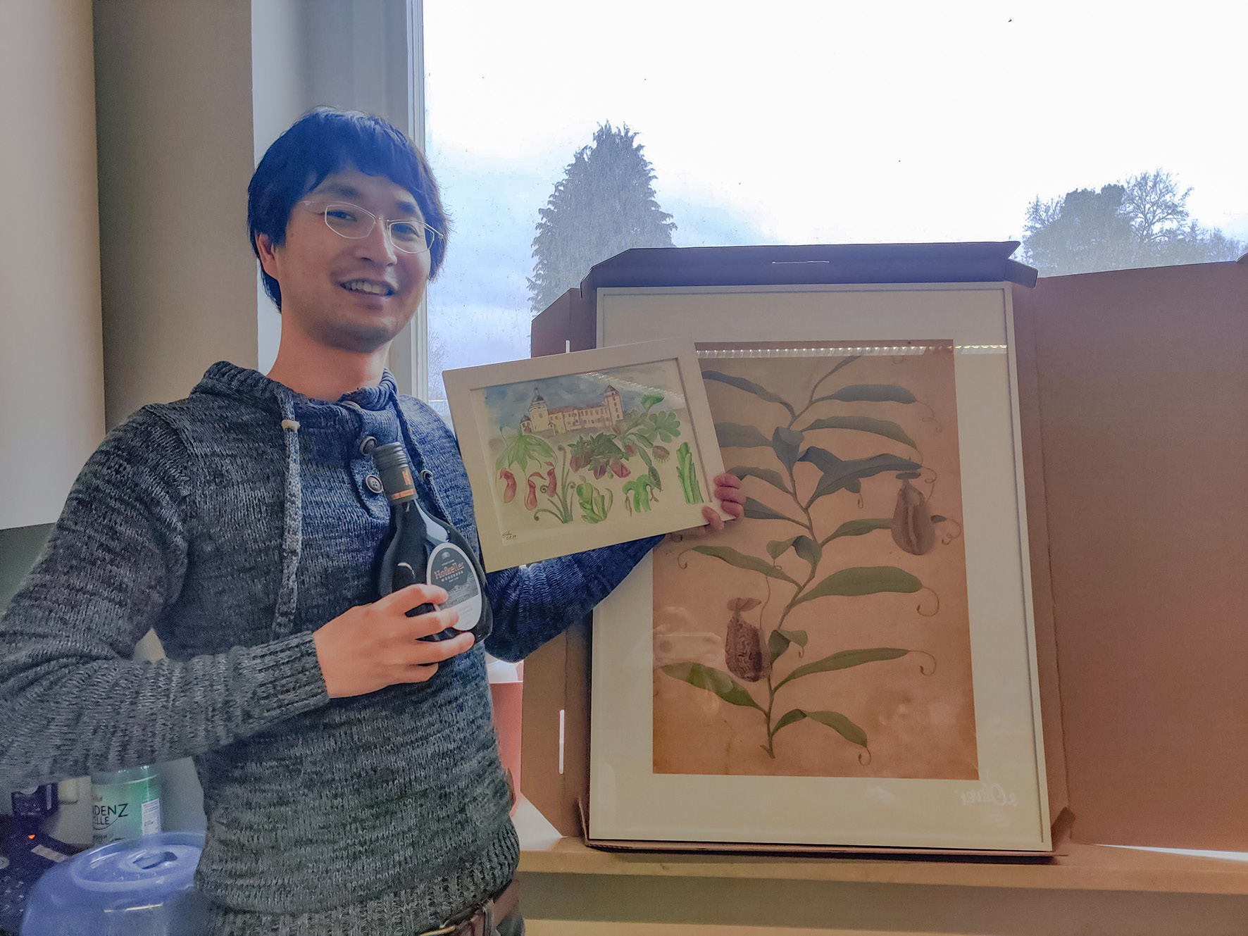 さて、日本学術振興会海外特別研究員制度からの支援は2年間で終了します。その後のことを念頭におき、コロラド大学にいる間にいくつかのグラント(助成金)に応募していました。そのうち、ドイツのフンボルト財団が提供するソフィア・コワレフスカヤ賞というグラントに採択され、2018年10月からはドイツのヴュルツブルク大学植物学科Iで、グループリーダーとして研究室を立ち上げることになりました。世界でも珍しいのですが、そこの当時の学科長は、食虫植物を扱った研究を展開しています。また、初代学科長も食虫植物に興味をもっていた方で、彼が150年ほど前に描いたウツボカズラの絵のレプリカをドイツの同僚が贈ってくれて、今も私の研究室に飾ってあります。