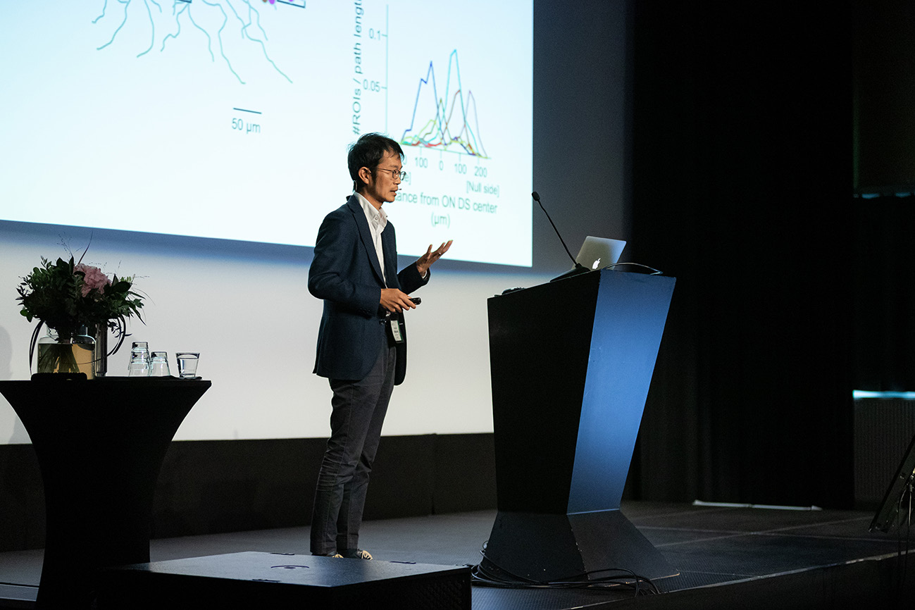 また、網膜を構成する細胞の中には、「双極細胞」という種類もあります。これが方向選択的な信号を発するかどうか、よくわかっていませんでした。ロスカ研究室時代にもこの研究を行い、そのときには「発しない」という結論だったのですが、ここでの解析からは、それを覆す実験結果が得られました(*6)。シナプス1個1個の反応を二光子顕微鏡で測定し、その大量のデータを機械学習で解析したのです。より精度の高い解析を行ったことで得られた結果だと考えます。これ以外にも、網膜からのシグナルが大脳皮質のどの領域に届くのかを、FRMD7ノックアウトマウスを使った解析によって見つけたこともありました(*7)。