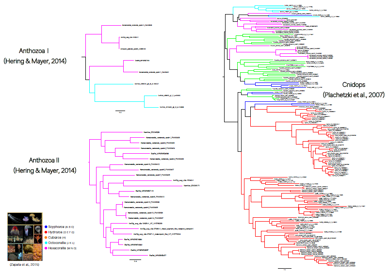 刺胞動物の持つオプシンは、大きく3つのグループに分かれ、且つそれぞれの系統内で独自に進